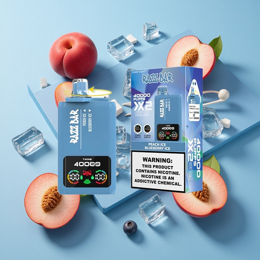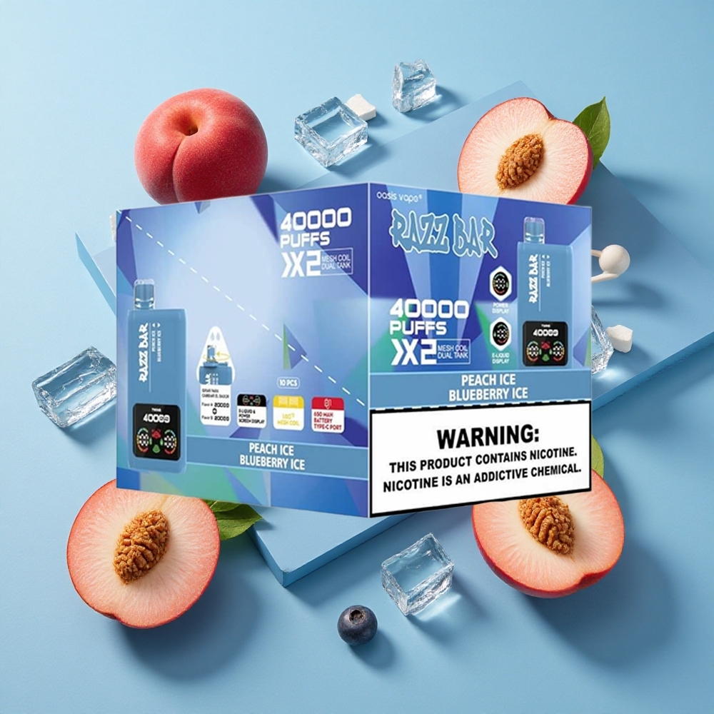 Barackjég_Áfonyajég Razz Bar 40000 Puffs Egyhasználatos E-cigaretta Típus-C Port és Teljesítmény Kijelző