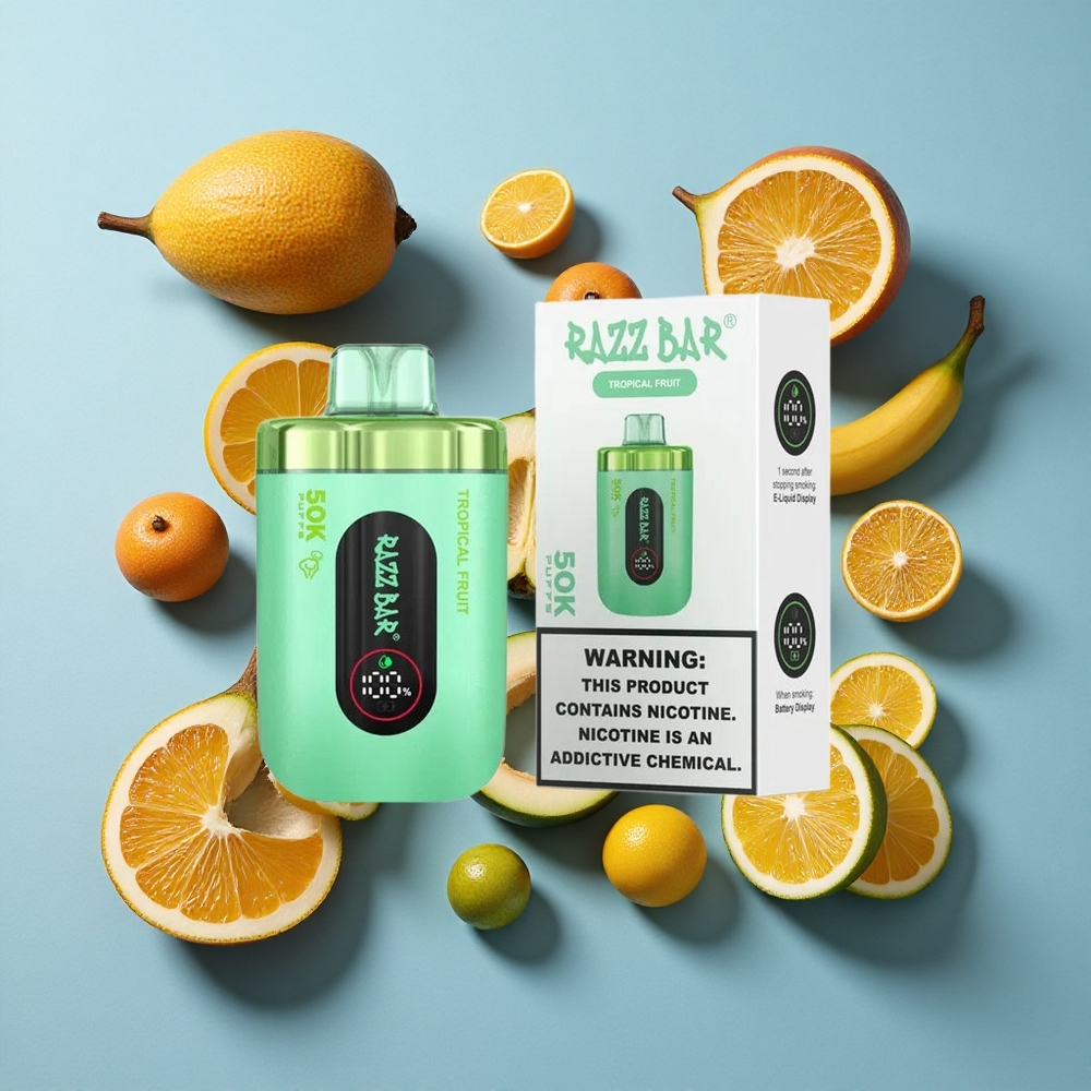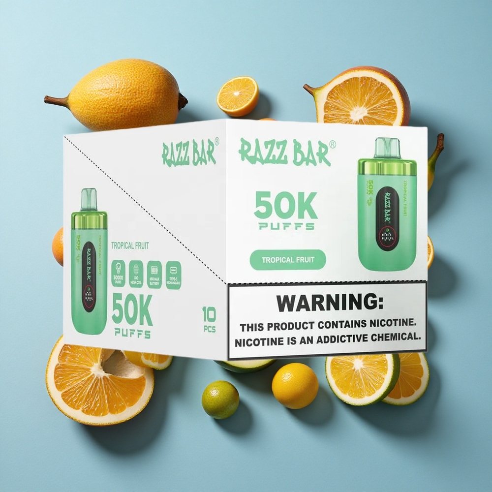 Trópusi Gyümölcs és Razz Bar 50K Puffs Elszívható E-cigaretta 50000 Puffs és 1.0 Ohm Mesh Coil
