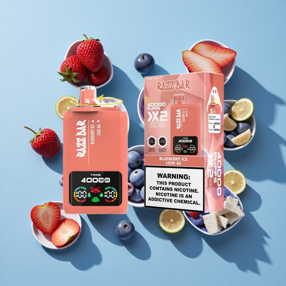 Áfonya Jég_Love 66 Razz Bar 40000 Puffs Egyhasználatos E-cigaretta Kijelzővel és Type-C Porttal