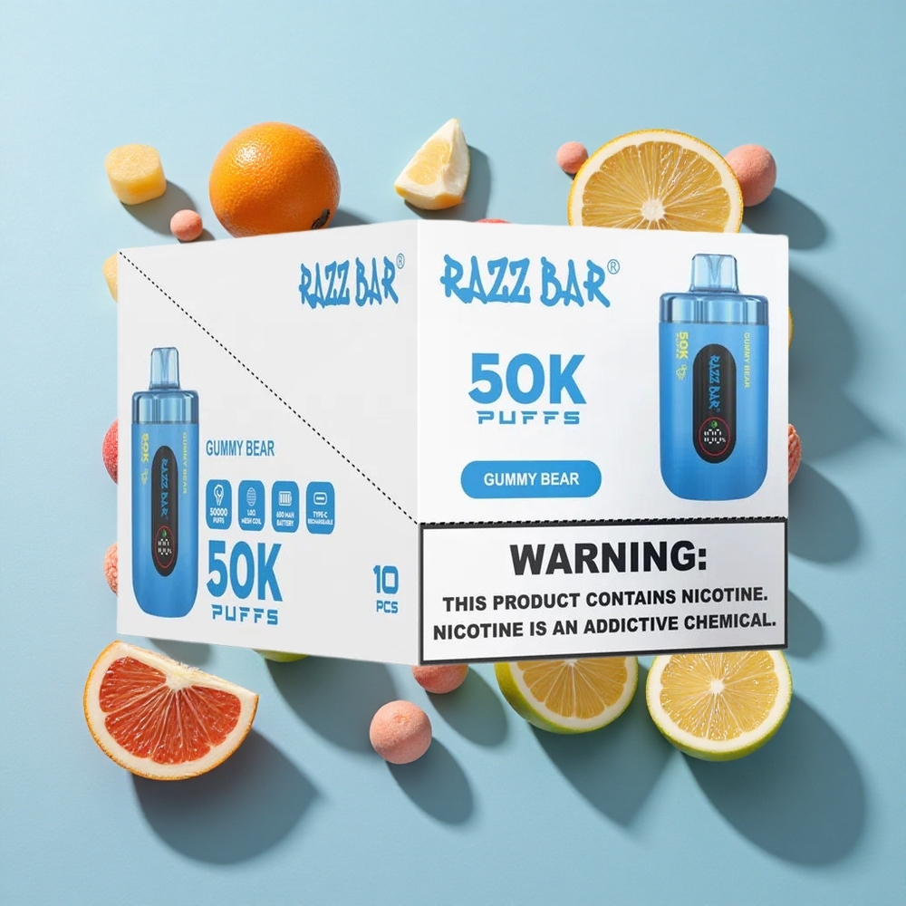 Málna-Mezes Medve íz Razz Bar 50K Puffs Eldobható E-cigaretta 50000 Puffs és 650 MaH Akkumulátor