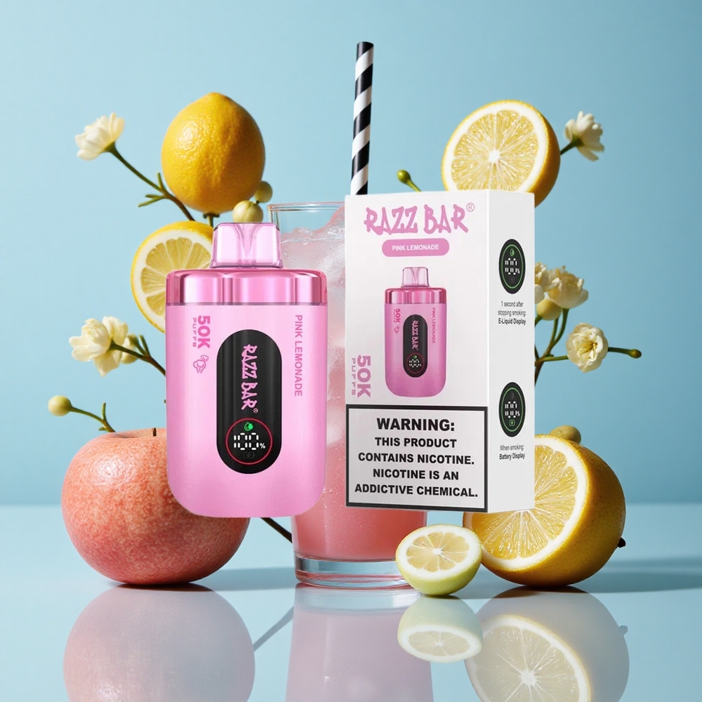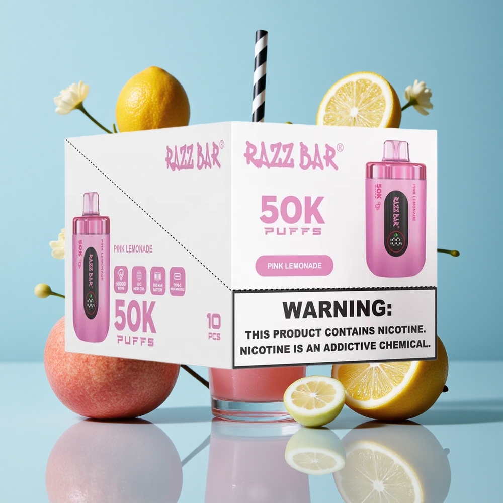 Rózsaszín Limonádé Razz Bar 50 000 Puffs Egyszerhasználatos E-cigaretta Type-C Töltés